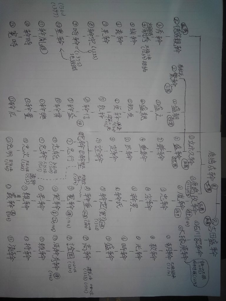 とりあえず確実な資料と不確実な資料を合わせて系図を書いてみました↓